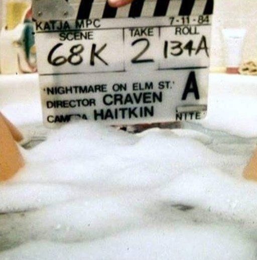 Кадры с перчаткой Фредди Крюгера появляющейся из-под воды между ногами ничего не подозревающей Нэнси, задремавшей принимая ванну были одной из самых запоминающихся сцен культового ужастика и сняли её (как было принято в то время из-за её дороговизны) без использования компьютерной графики - только практические спецэффекты.