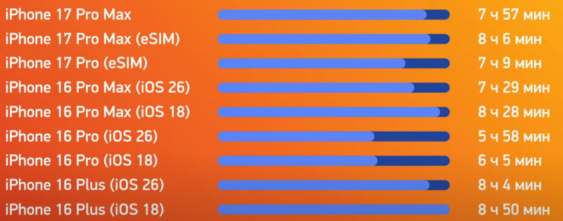 Есть видео где чел тестирует все версии Айфона на самых высоких производительностях. 8 часов при мега нагрузке держит 17 айфон.